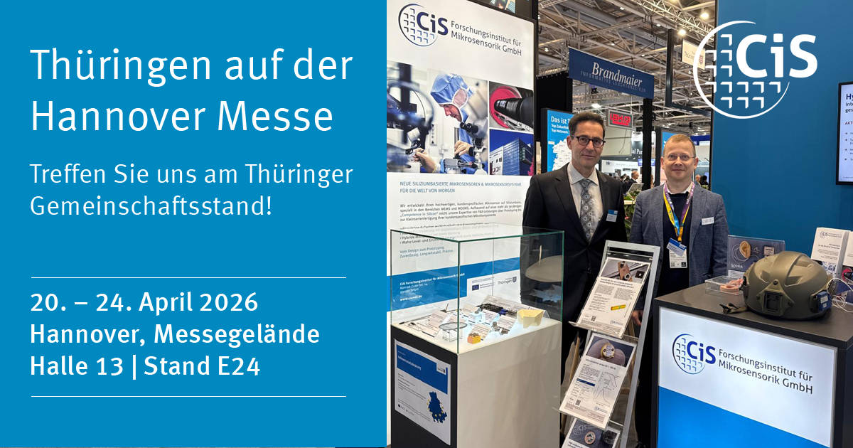 Heute startet die Hannovermesse, die größte Plattform für industrielle Transformation. In Halle 13 auf dem Thüringer Gemeinschaftsstand der LEG (Stand E24) zeigen unsere Experten in den nächsten fünf Tagen neue Projektergebnisse und Anwendungen siliziumbasierter MEMS- und MOEMS-Sensorkonzepte.